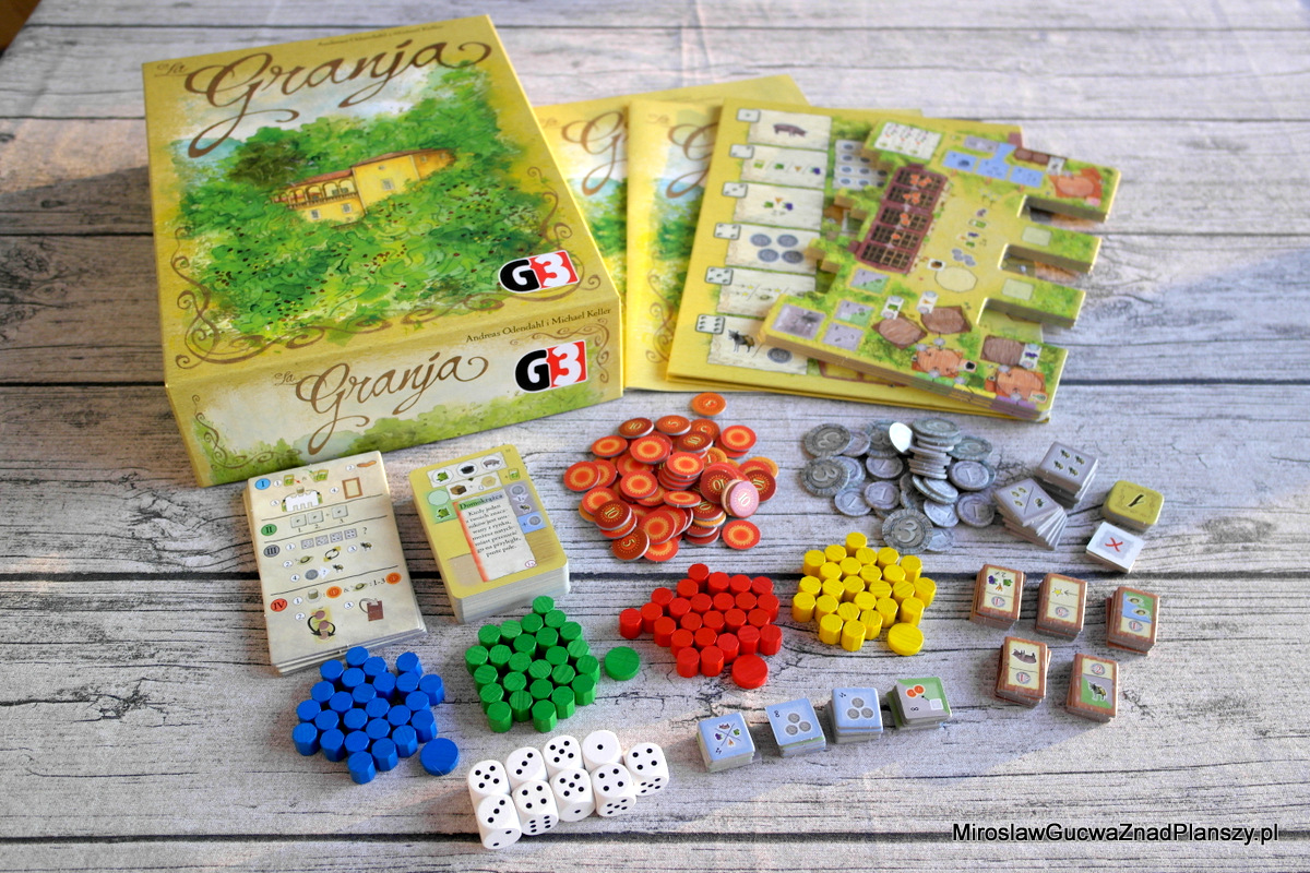 „Wsi spokojna, wsi wesoła! Który głos twej chwale zdoła?” Na pewno starają się temu podołać autorzy gier planszowych, którzy nie raz raczyli nas agrokulturową tematyką podaną w różnych wariantach i mechanikach. Akurat klimat spokojnych wsi mnie nie odstrasza i nie męczy, w odróżnieniu od kolejnego królestwa do zbudowania, dlatego z czystą przyjemnością zasiadłem do polskiego wydania gry „La Granja”. A jeżeli masz ochotę poznać jak wygląda życie hiszpańskiego rolnika i jak różni się ono od wersji rosenbergowskiej, to zapraszam do dalszej lektury.