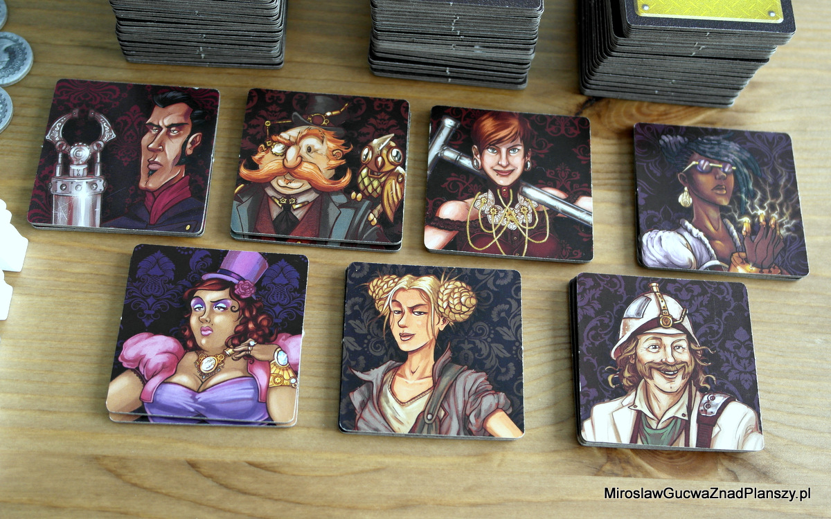 Mechanika kafelkowa sama od siebie wprowadza niepowtarzalność rozgrywek, ale tutaj masz jeszcze do dyspozycji aż ośmiu bohaterów – wynalazców, którzy dysponują zupełnie różnymi akcjami dodatkowymi, które zdecydowanie zmieniają sposób gry. Te akcje aktywujemy naszymi pomocnikami, zamiast wysyłać ich do obsługi maszyn. Wprawdzie można zagrać w wariant gry, w której każdy z graczy gra identyczną postacią, ale ja zdecydowanie polecam wariant zaawansowany, bo daje on więcej satysfakcji z gry, właśnie przez swoją różnorodność.